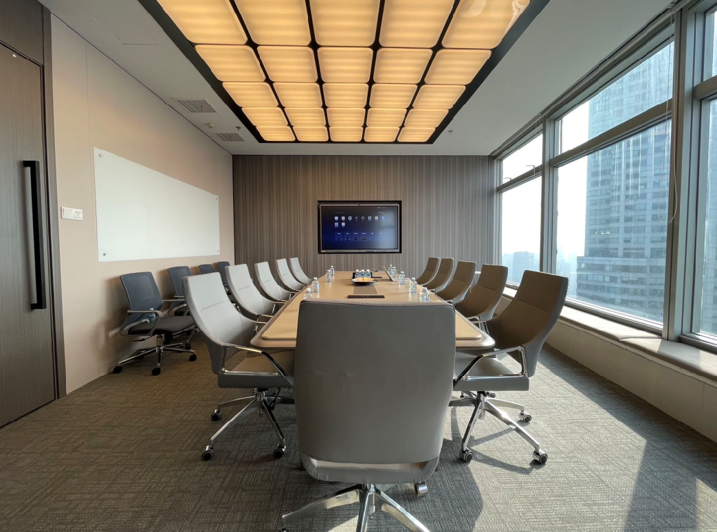 项目智能配置聚焦安全与效率:配备钉钉人脸识别门禁(同步实现考勤、访客管理,简化行政流程)、线上资源预约系统(会议室、洽谈室一键预订)、Maxhub 智能会议设备(支持无线投屏、白板书写,提升会议互动性);大小会议室、休闲区、洽谈室、茶水吧台不限时免费使用,满足高频沟通需求。